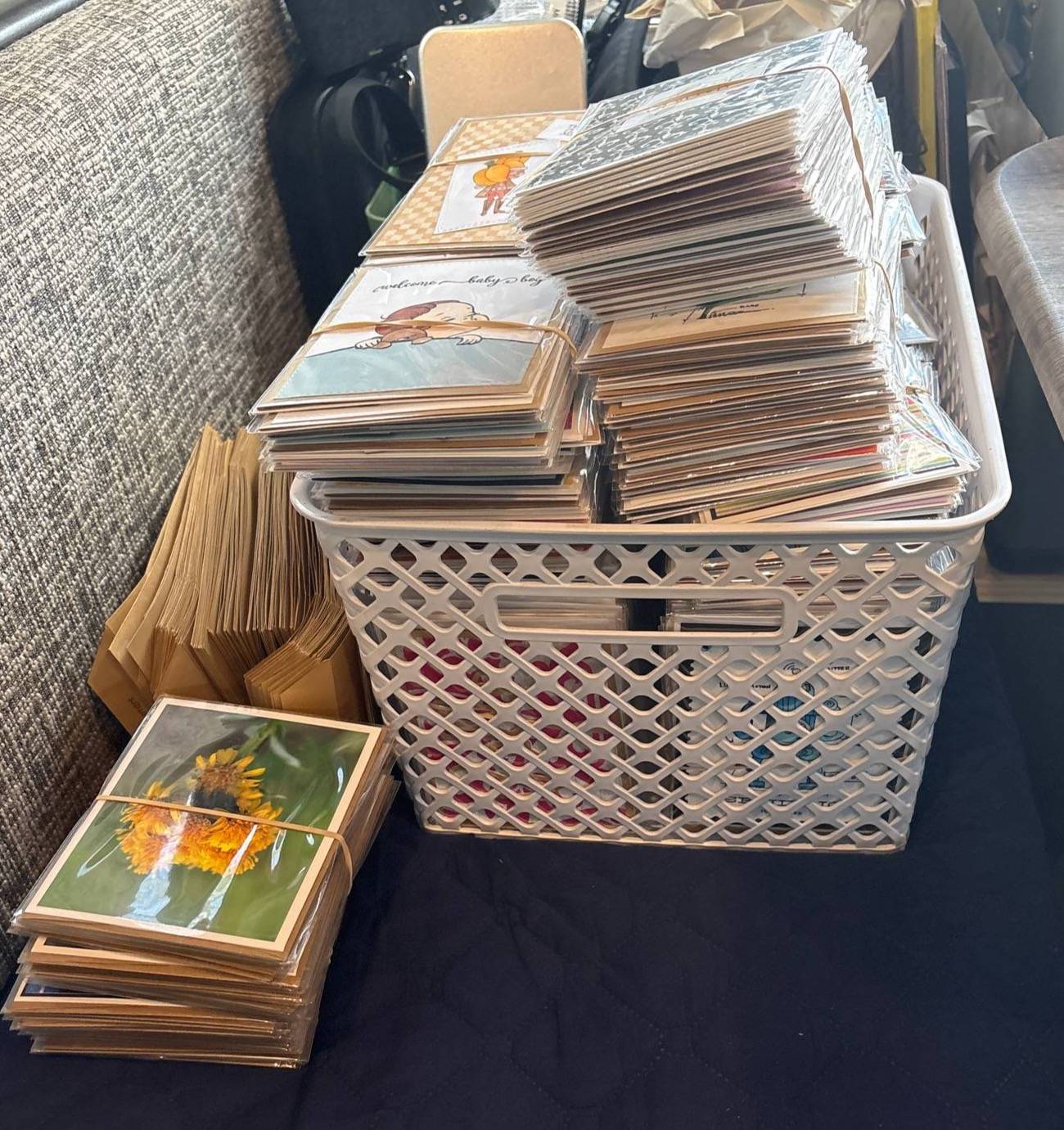Those of you who’ve been around from the beginning of the card business and the building of a niche empire in Delta probably already know that my friend Piper is closing Smiling Moose Gifts. With the closing of her shop came the return of all my consignment inventory. Sit down, it’s a lot… there are 516 cards and 412 stickers! What?